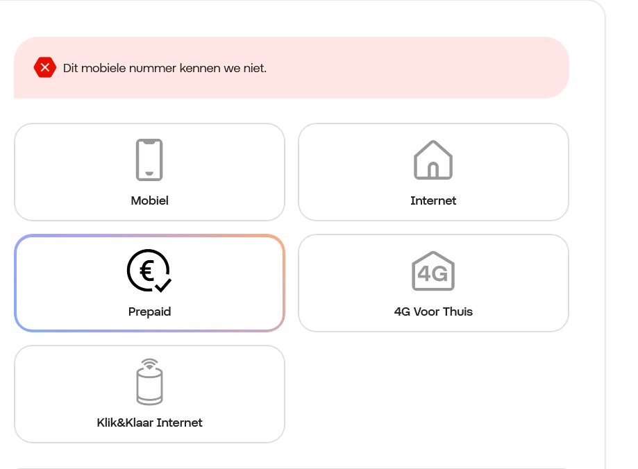 Good morning @atsaryonau I immediately checked the ticket number and see that there is now an update. It seems to be more complex than expected and will take a little longer to resolve. The reason for this is that it will be resolved with an IT update. This is expected to go live on November 18, and from then on you should be able to link the prepaid number to your account.