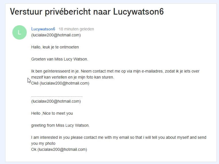 Ik ben geïnteresseerd in je. Neem contact met me op via mijn e-mailadres, zodat ik je iets over mezelf kan vertellen en je mijn foto kan sturen.
