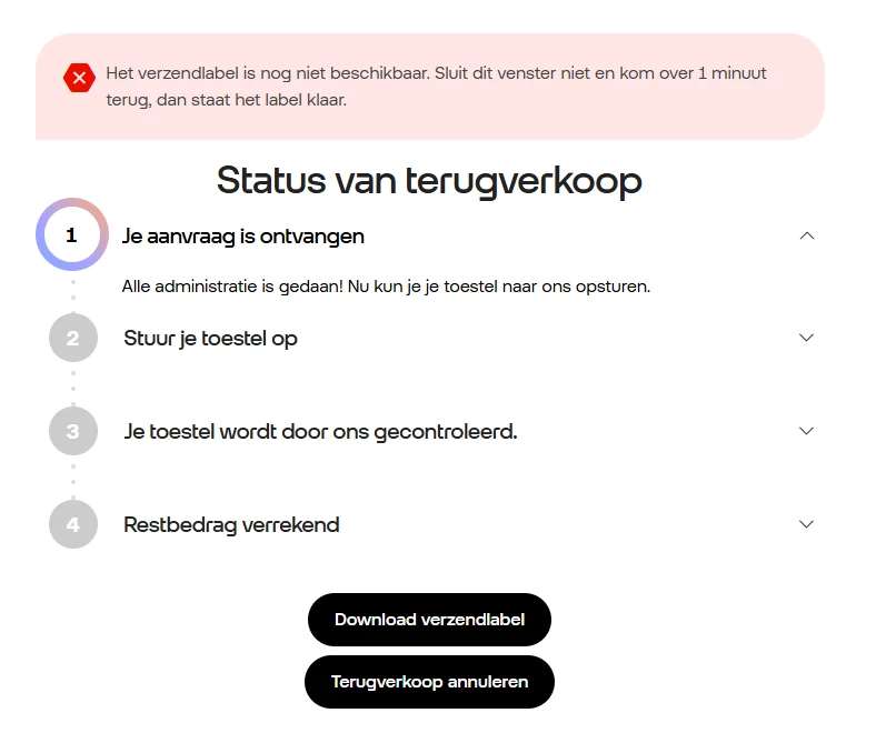 Goedemiddag, hoe lang ik ook wacht, mijn label wordt niet gegenereerd.