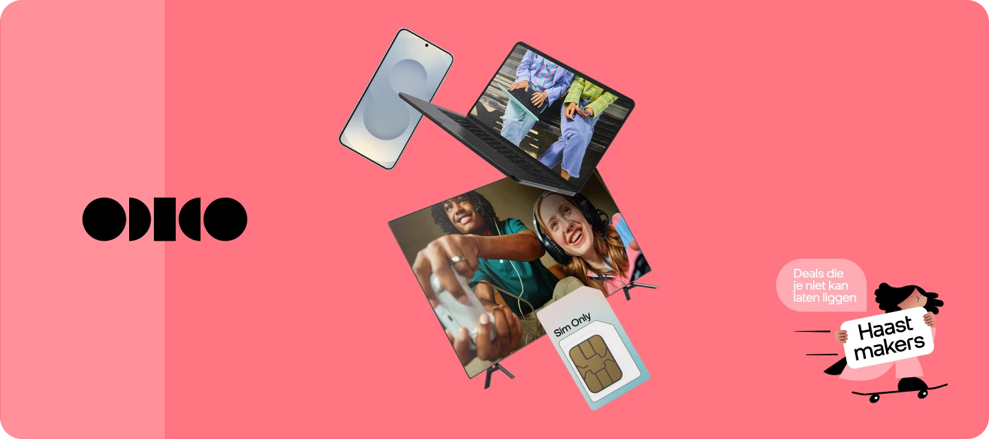 * Actie i.c.m. Hello-abonnement. Voordeel bestaat uit € 323 korting op Samsung Galaxy S25 128 GB (o.b.v. adviesverkoopprijs € 899 in Odido Shop). Check alle voorwaarden op Odido.nl.
