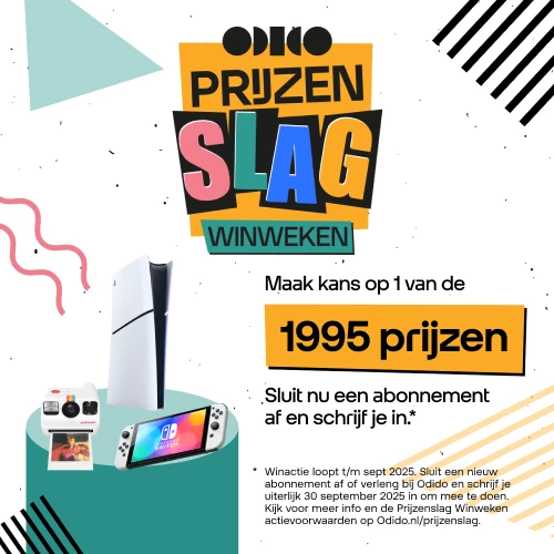 *Winactie loopt t/m 28 sept 2025. Sluit een nieuw abonnement af of verleng bij Odido en schrijf je uiterlijk 30 sept 2025 in om mee te doen. Kijk voor meer info en de Prijzenslag Winweken actievoorwaarden op Odido.nl/prijzenslag