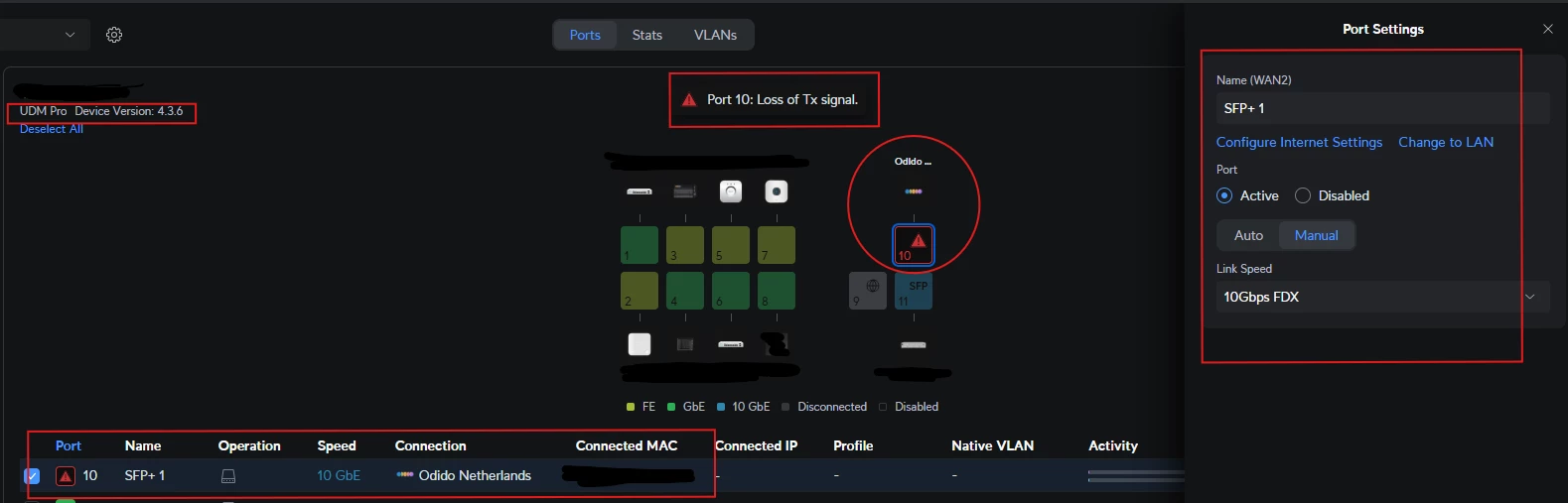 Onlangs heb ik een nieuwe Zaram SFP+ (model ZXOS11NPI) ontvangen. Deze is via mijn provider Odido succesvol geregistreerd. De verbinding is actief ik ben online en heb toegang tot internet.