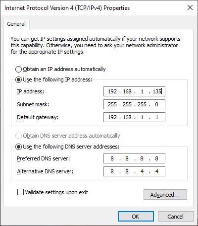 - navigeren naar Control panel >network and internet > network and sharing center > Ethernet > properties > internet protocol version 4 (TCP/IPv4) > Properties > use following IP address. Hierin heb ik mijn IP address aangepast om een static ip te maken: