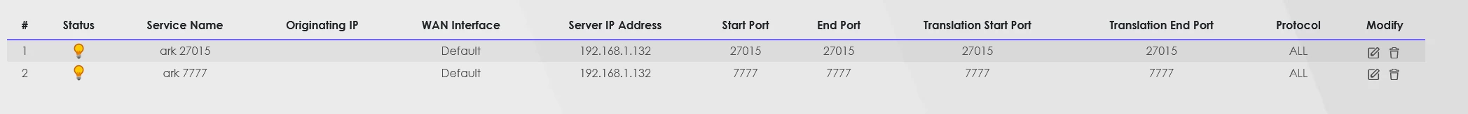 Ik wil graag een server op starten om met vrienden te kunnen gamen. Na hier gister avond mee aan het werk te zijn geweest, heeft het een tijdje gewerkt en daarna plotseling niet meer. Het gaat om een server voor ark survival evolved, waar ik de poorten 27015 en 7777 open moet zetten op protocol UDP en TCP.