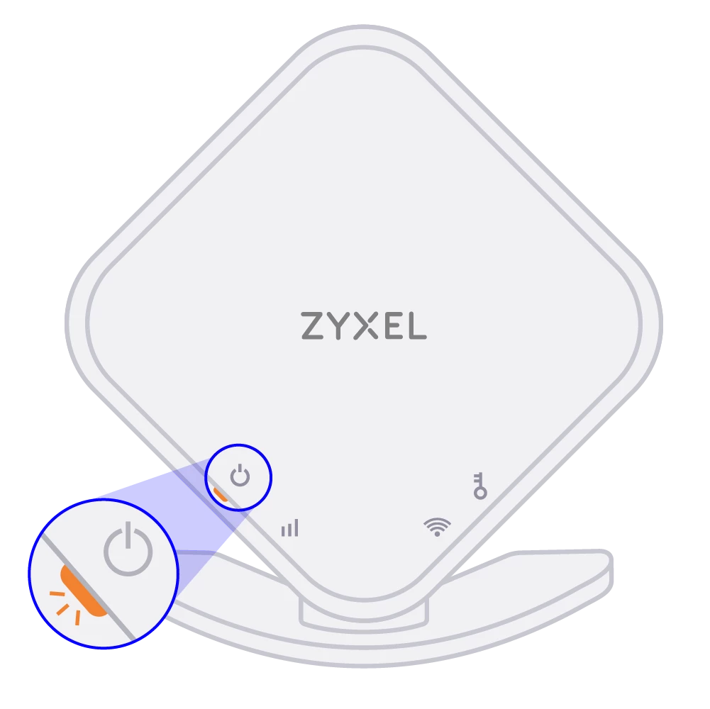 Het wifipunt maakt automatisch verbinding met het modem en het powerlampje kleurt oranje. Als het powerlampje oranje blijft branden, is de verbinding gelukt. Dit kan tot 10 minuten duren.